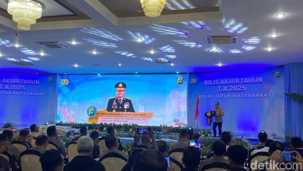 Jakarta – Polda Metro Jaya menggelar Rilis Akhir Tahun (RAT) 2025 pada Rabu (31/12/2025) di gedung BPMJ, Jakarta Selatan. Acara ini memaparkan capaian penegakan hukum selama setahun terakhir dalam upaya menjaga kondusivitas Ibu Kota.