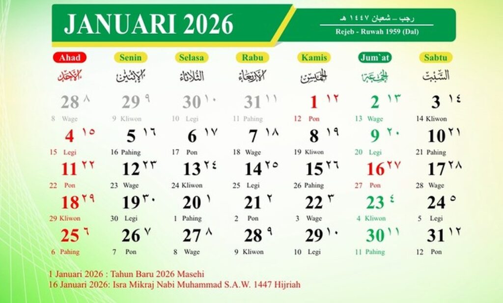 Memasuki tahun 2026, bulan Januari akan diisi dengan berbagai peringatan hari penting nasional dan internasional, serta sejumlah tanggal merah yang telah ditetapkan. Informasi ini penting bagi masyarakat untuk merencanakan aktivitas sepanjang bulan.