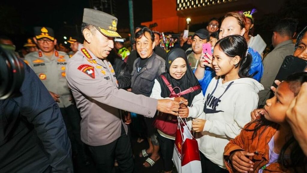 Setibanya di Bundaran HI, Jenderal Sigit langsung menyapa masyarakat dan memantau situasi di sekitar area perayaan. Dalam kesempatan tersebut, ia juga membagikan 400 goodie bag kepada warga yang hadir.