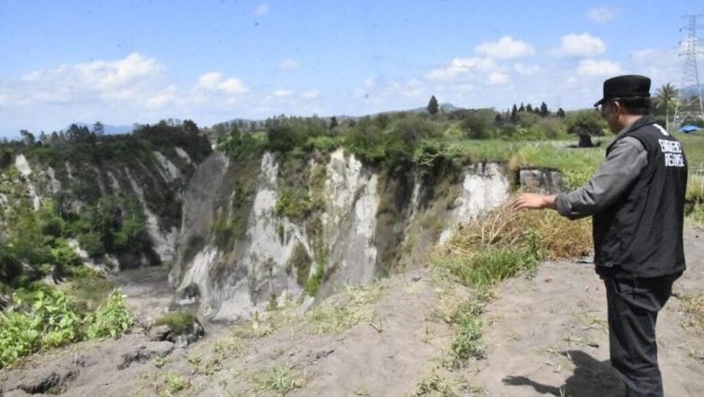 Aceh Tengah – Sebuah lubang raksasa menganga di Kampung Bah, Kecamatan Ketol, Aceh Tengah, Aceh. Fenomena alam ini nyaris menyentuh badan jalan, dengan perkiraan kedalaman mencapai 100 meter.