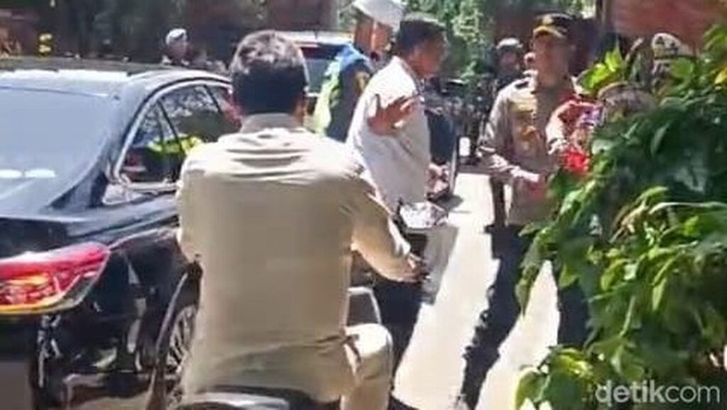 Di tengah rombongan mobil menteri, perhatian tertuju pada Menteri Kelautan dan Perikanan, Sakti Wahyu Trenggono, yang memilih menggunakan sepeda motor. Ia langsung memasuki gerbang setelah tiba, meninggalkan motornya di depan.