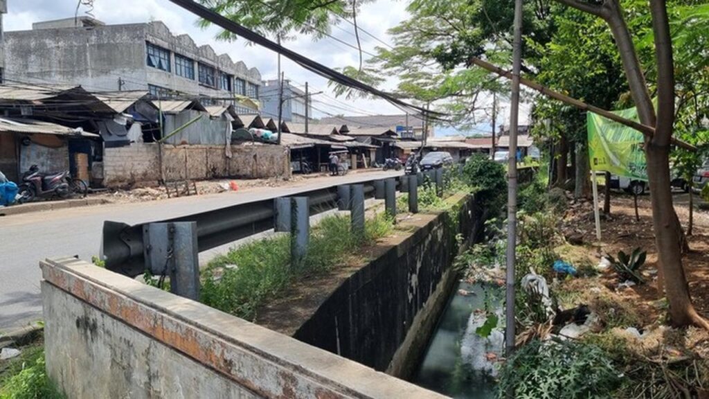 TANGERANG SELATAN – Bau busuk menyengat masih terasa di kawasan Pasar Cimanggis, Tangerang Selatan, meskipun tumpukan sampah yang sempat meluber ke jalan telah diangkut. Keluhan warga kali ini tertuju pada selokan yang terletak persis di seberang pasar, yang juga menjadi lokasi pembuangan sampah ilegal.