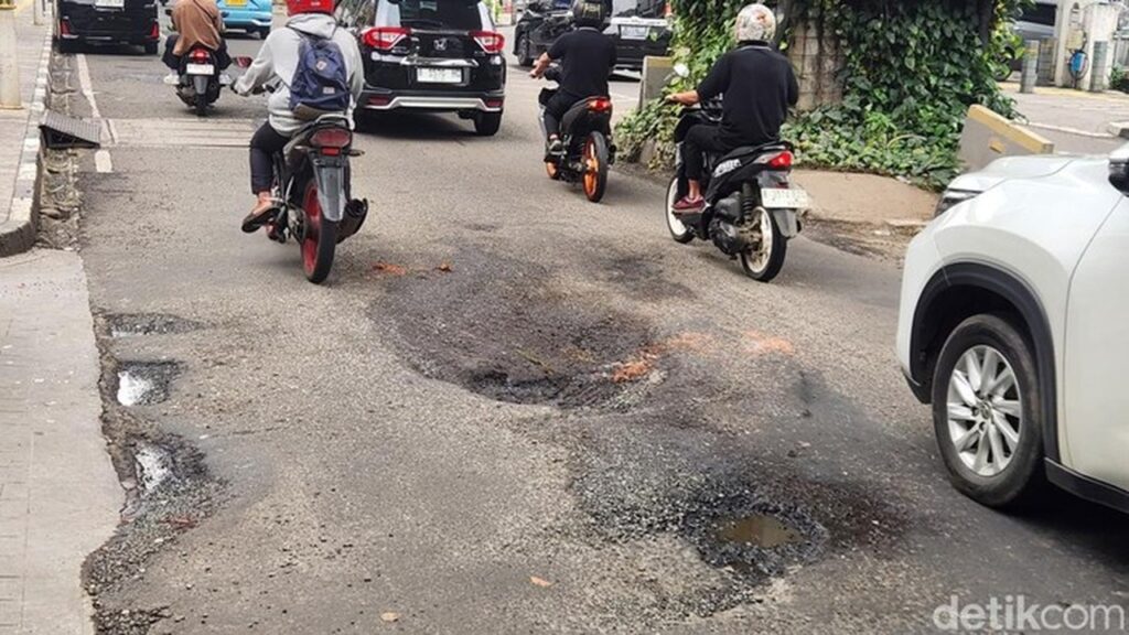 Hujan yang mengguyur kawasan Jakarta beberapa waktu terakhir meninggalkan jejak berupa sejumlah jalan berlubang di berbagai titik. Kondisi ini mengharuskan para pengendara untuk lebih berhati-hati saat melintas, terutama di wilayah Jakarta Selatan.